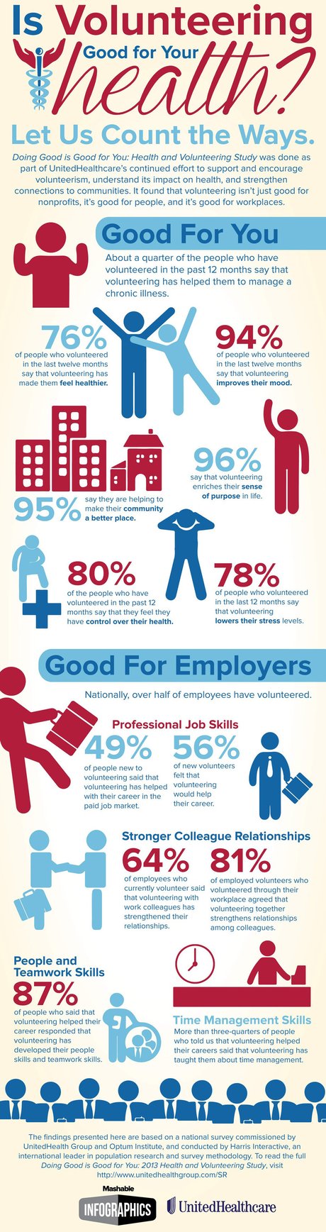 Indeed, a new study by the UnitedHealth Group, the Optimum Institute, and Mashable has found a link between volunteering and better physical, mental, and emotional health.